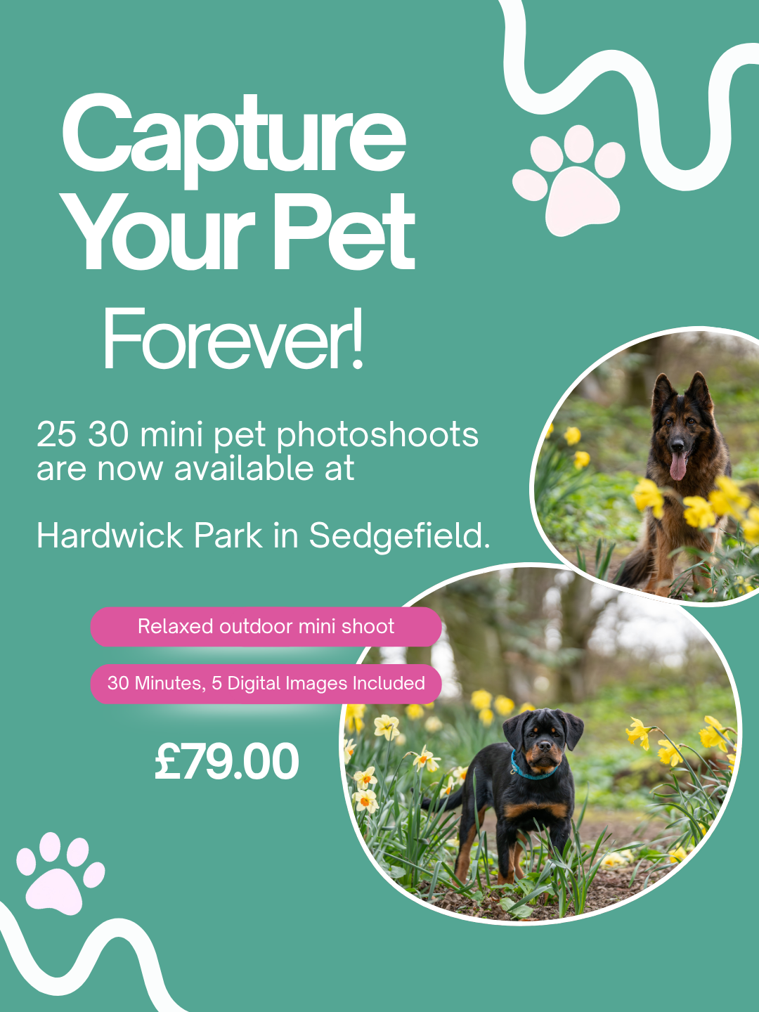 I am so excited to be opening 25 mini pet photoshoot sessions at Hardwick Park in Sedgefield.